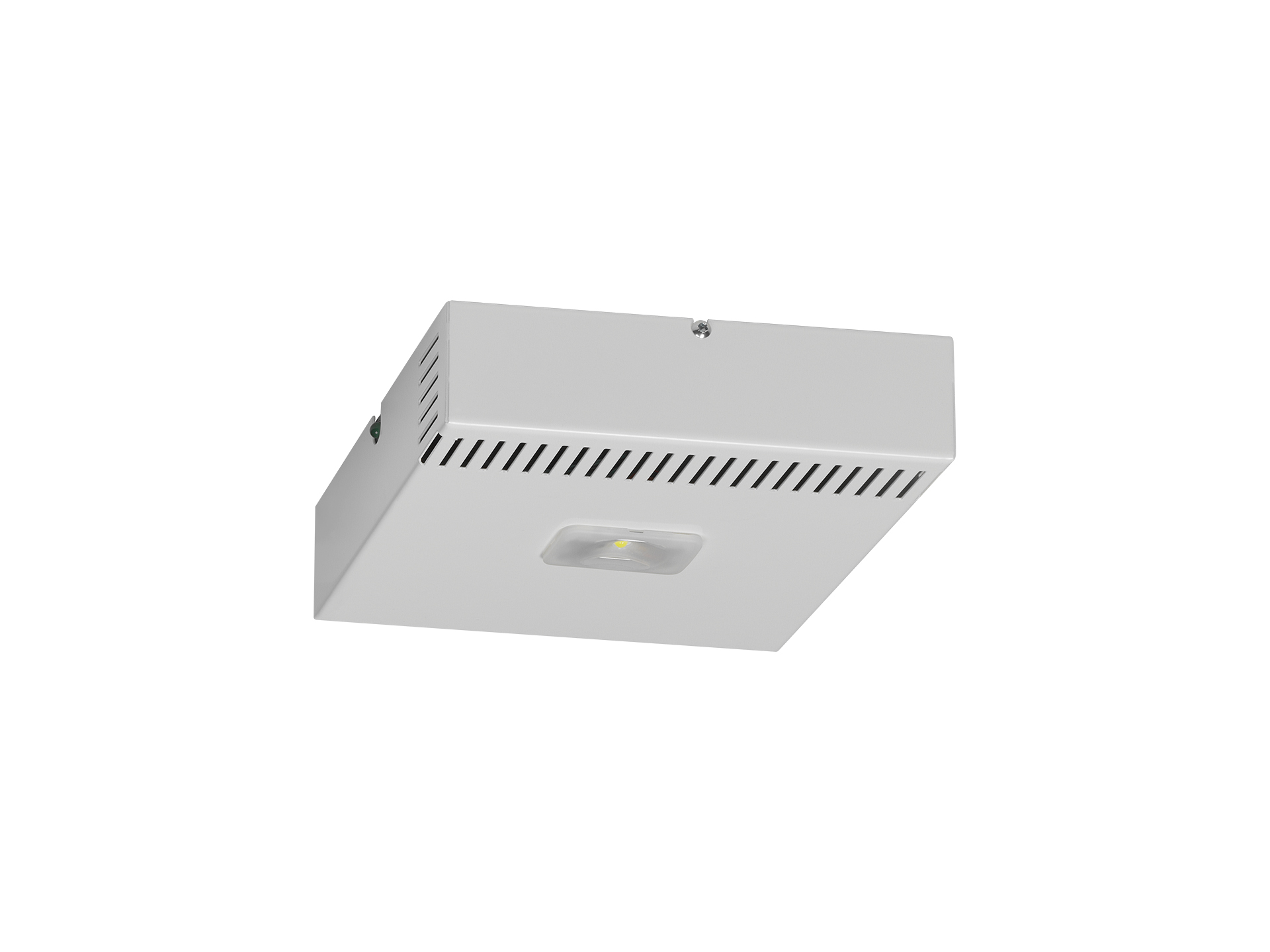 SICUROLUX-PU is a square emergency luminaire complying with DIN EN 60598-1/-2-22 and DIN EN 1838. The housing is made of white zincor. The emergency luminaire can be supplied with a rotationally symmetrical distribution for anti-panic lighting or an ellipsoidal distribution for escape routes. SICUROLUX-PU is suitable for ceiling mounting.